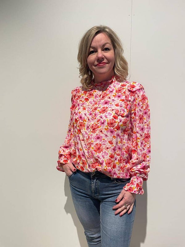 Vrolijk gebloemd blouse, met roesjes!