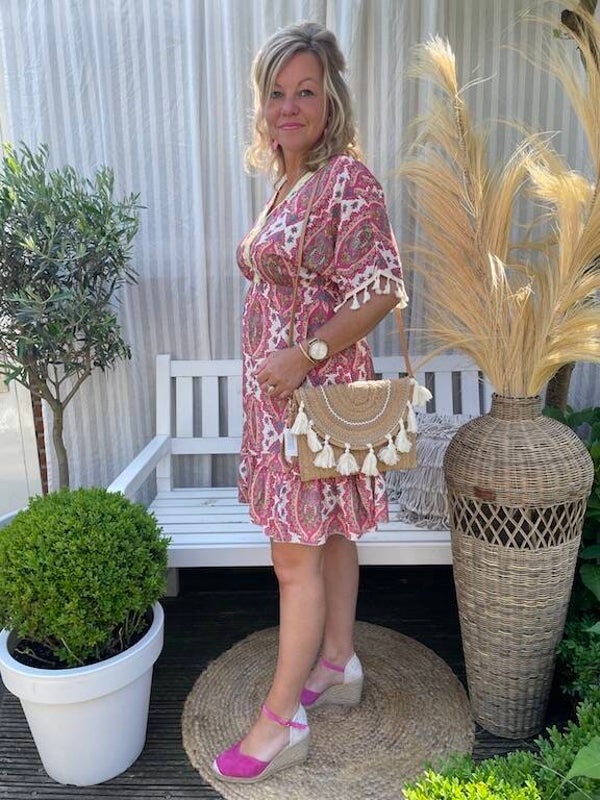 Hoe leuk is dit rieten tasje met die losse franjes, wat de tas het echte bohemain styltje geeft!