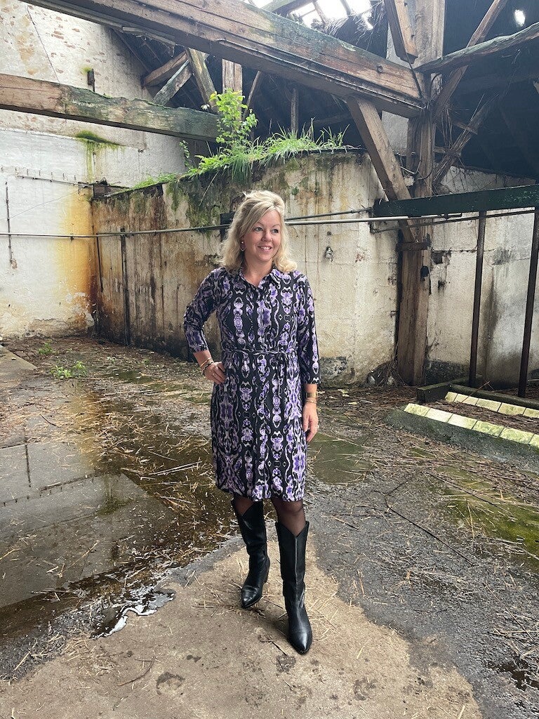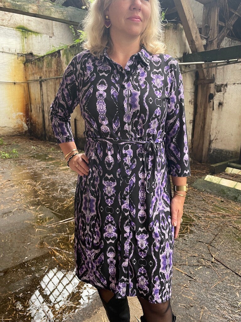 Jurk Angelle Milan Travelstof Elin - Paars, zwart