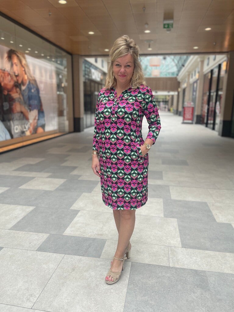 Jurk Angelle Milan Travelstof Dana - Zwart, fuchsia