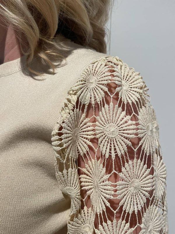 Trui met prachtig uitgewerkte mouwen.