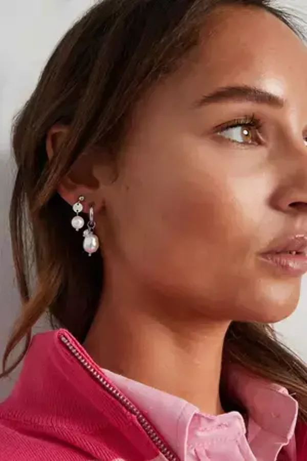 Zilverkleurige ringetjes met een grote en kleine parel eraan.
