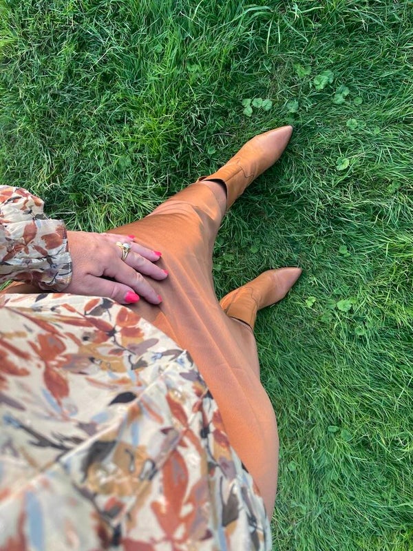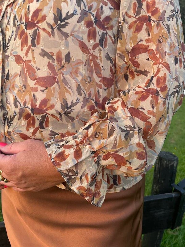Dun blouse met print in bruin tinten.