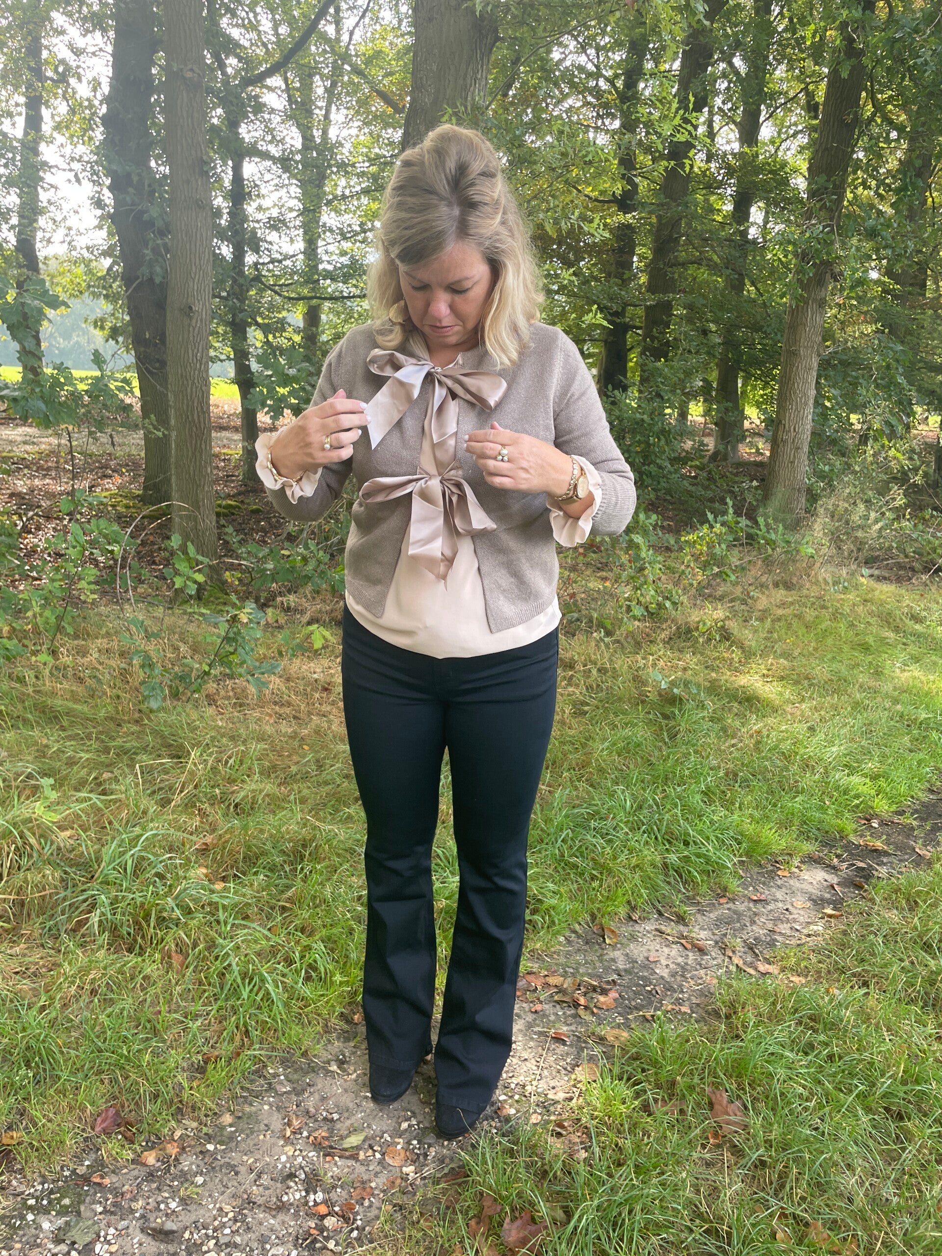 Kleur: Taupe, ook verkrijgbaar in Vest Romance - Blauw