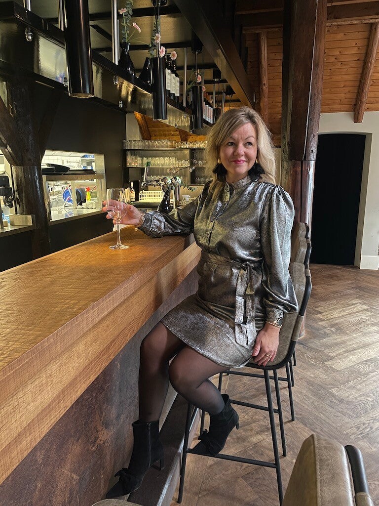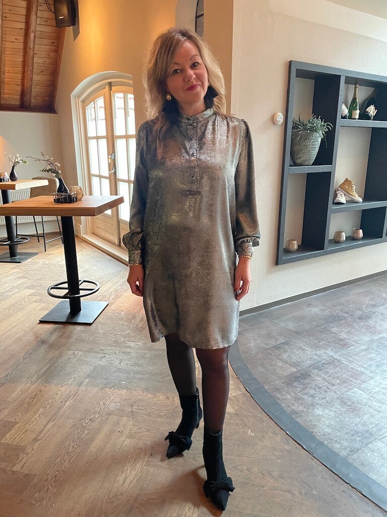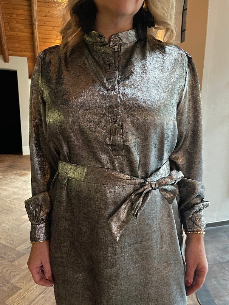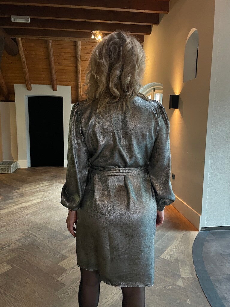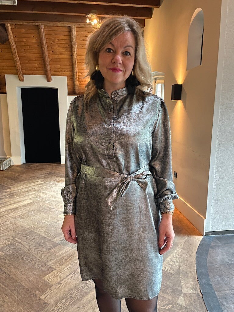 Schitter jij met dit mooie metallic jurkje, dat zowel in het goud als in het zilver verkrijgbaar is?