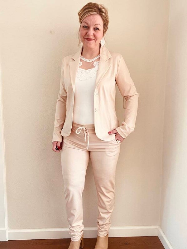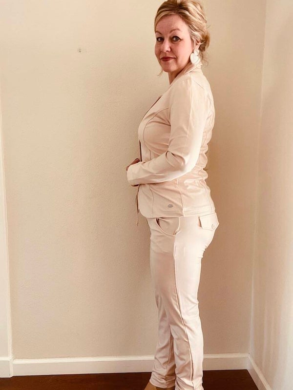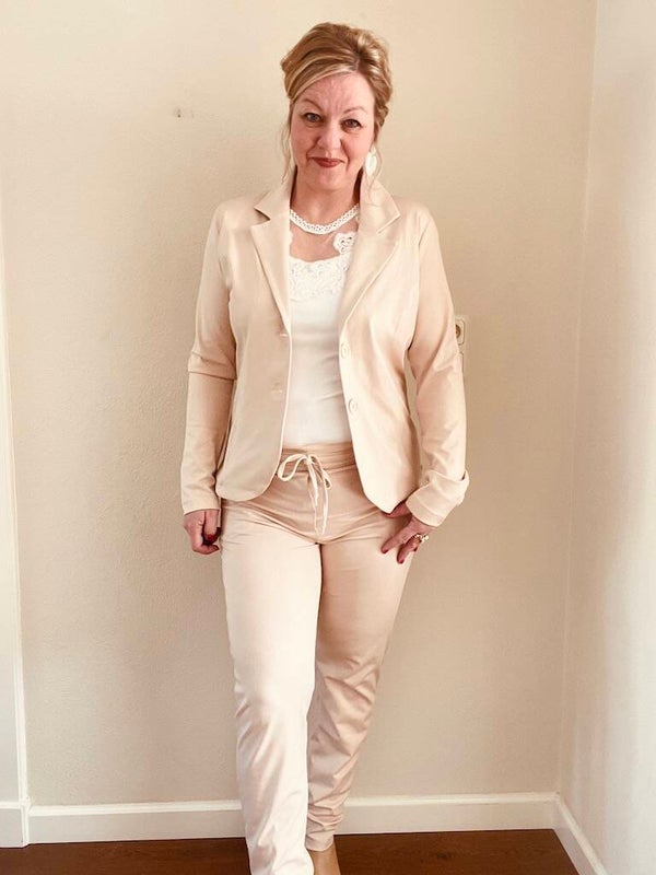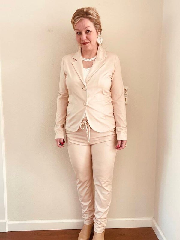 Model: 1.67 lang en heeft maat M/L, op de foto draag ik het jasje in maat M, de broek in maat L