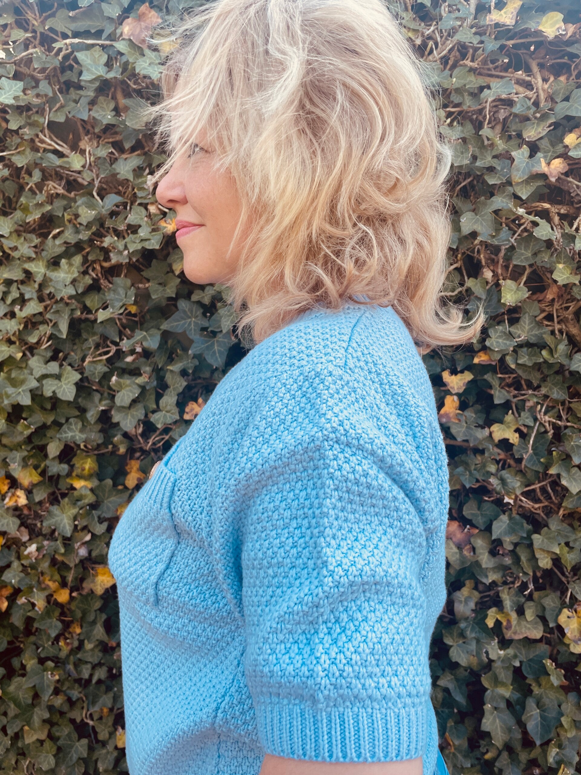 Kleur: lichtblauw, ook verkrijgbaar in Vest Azzurro Korte mouw - Roze