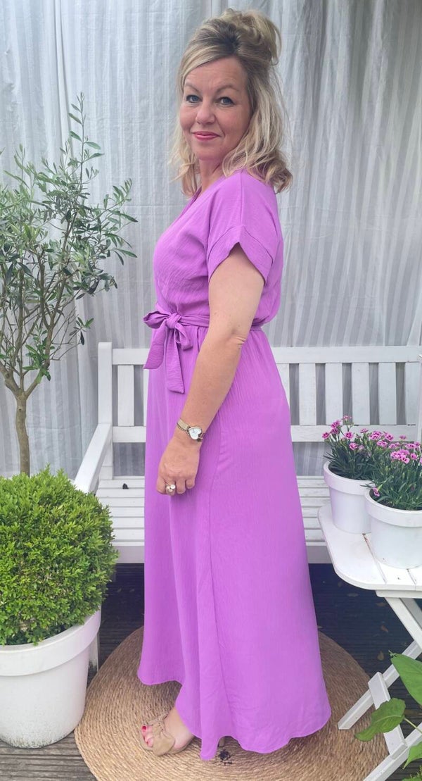 Kleur: Paars, ook verkrijgbaar in Lange Jurk Azzurro - Beige