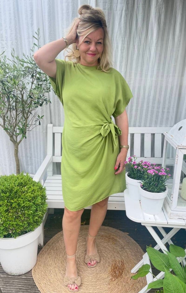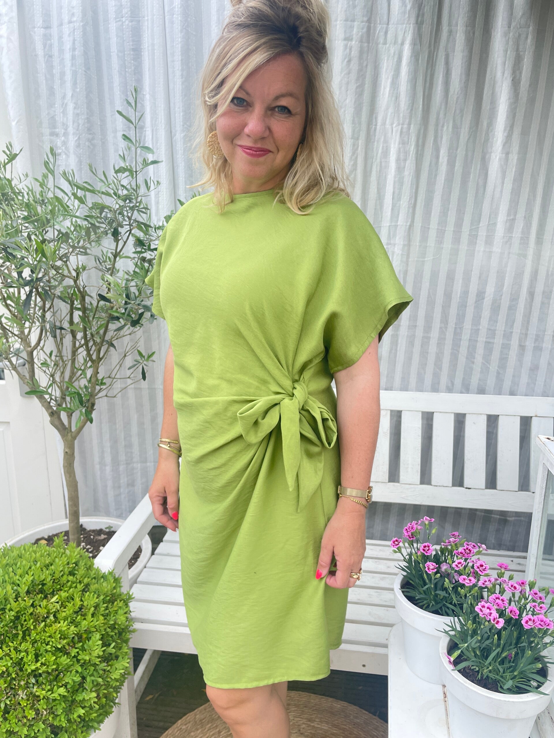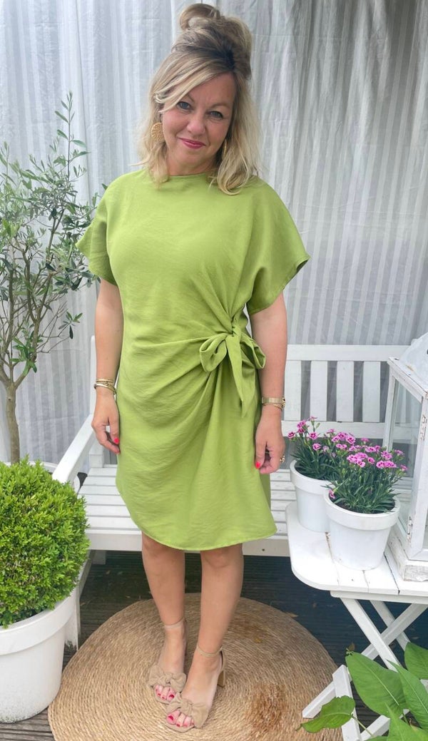 Fijn zomerjurkje met striksluiting aan de zijkant in de taille.