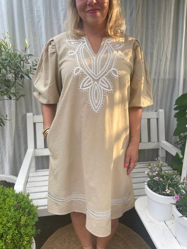 Zomerjurkje van het merk Azzurro, met v-hals en borduursels langs de hals.