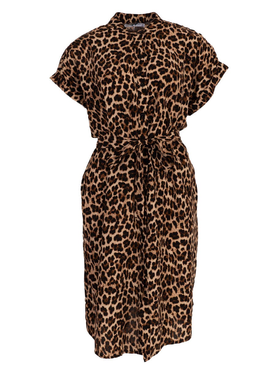 Doorknoop zomerjurkje met losse tailleband en leopard print.