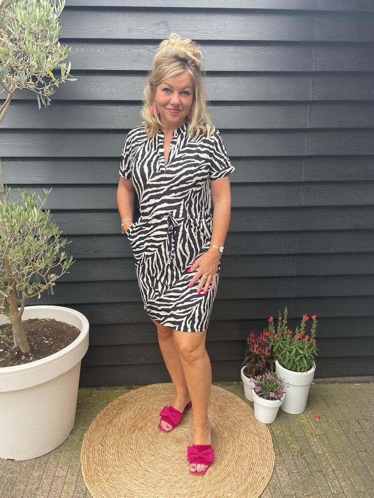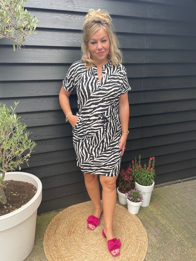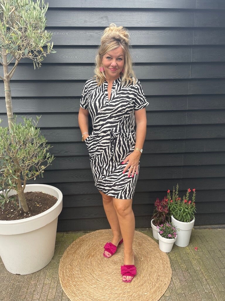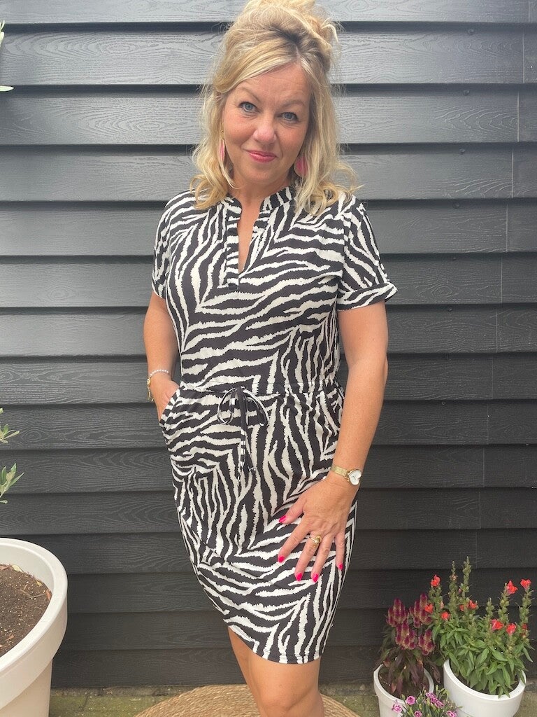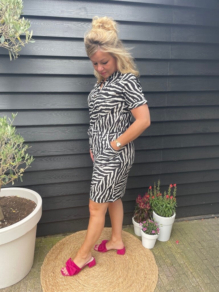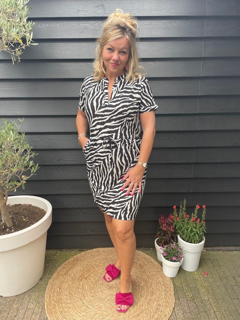 Jurk Angelle Milan Travelstof Marita - Zwart, wit