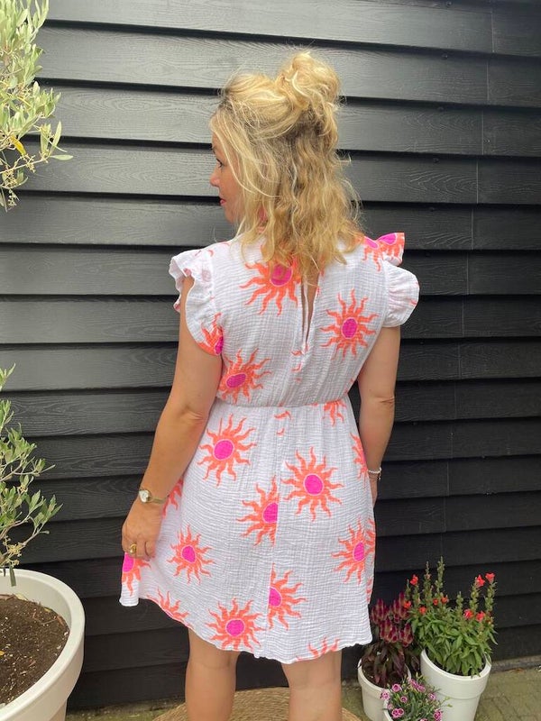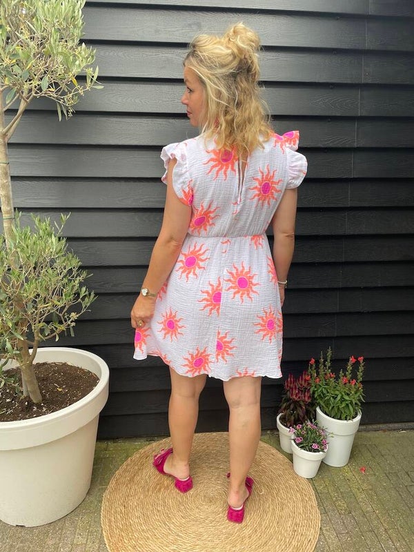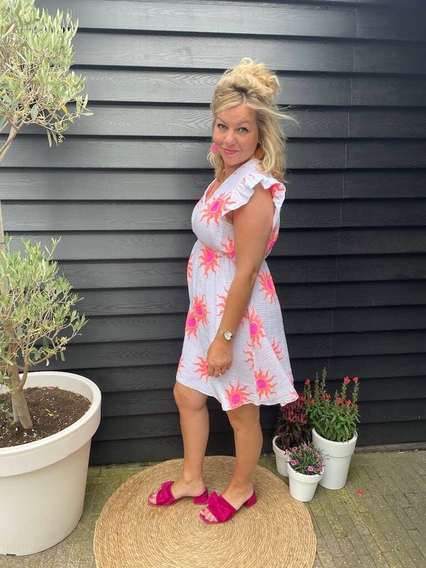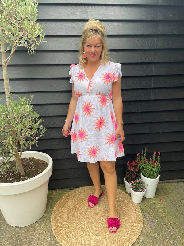 Kleur: Wit, oranje ook verkrijgbaar in Zomerjurk Liona - Roze en Zomerjurk Liona - Beige