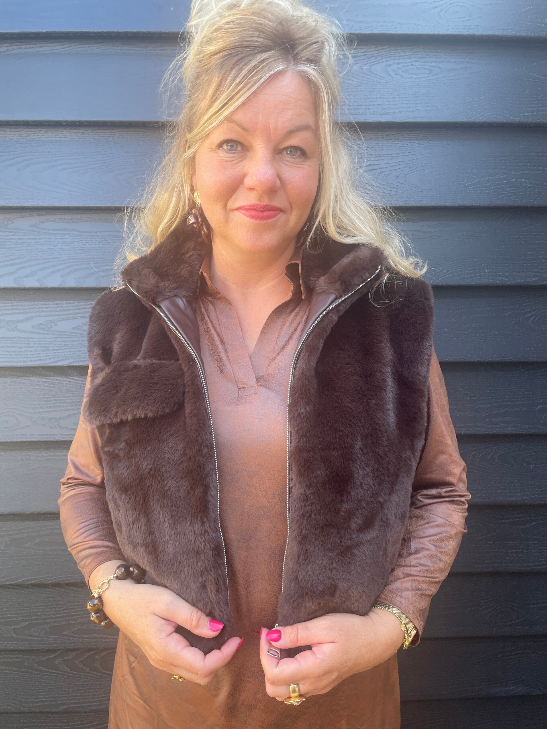 Kleur: Bruin, ook verkrijgbaar in Gilet Bont Noulia - Creme