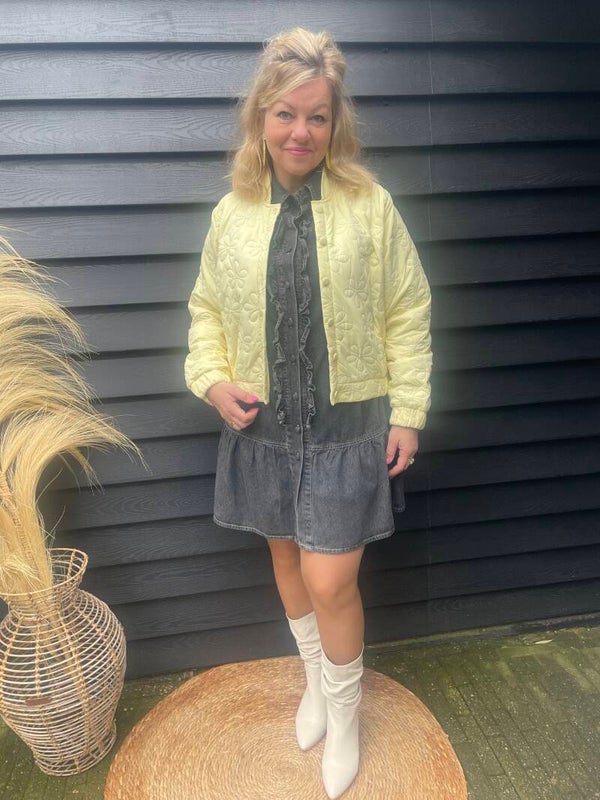 Dit jurkje is gemaakt van een soepele jeansstof.