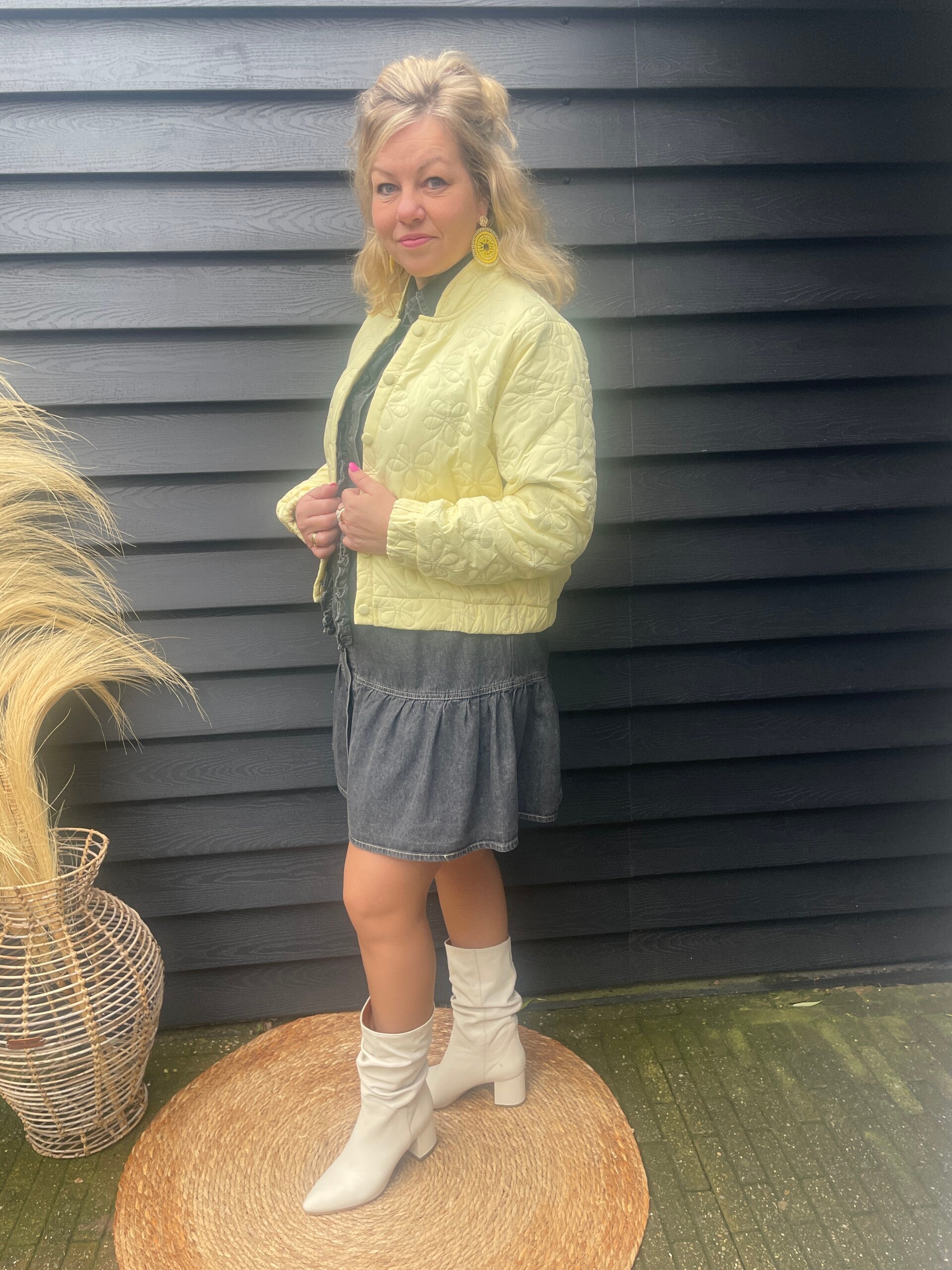 Het jurkje kun je met een riem dragen als je taille wilt creëren, maar kan ook heel goed gestyled worden met een gilet.
