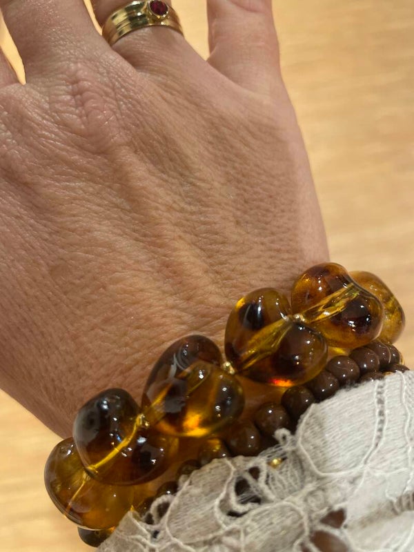 Hartjes vormige kraaltjes armband met elastiek,in leopard print.