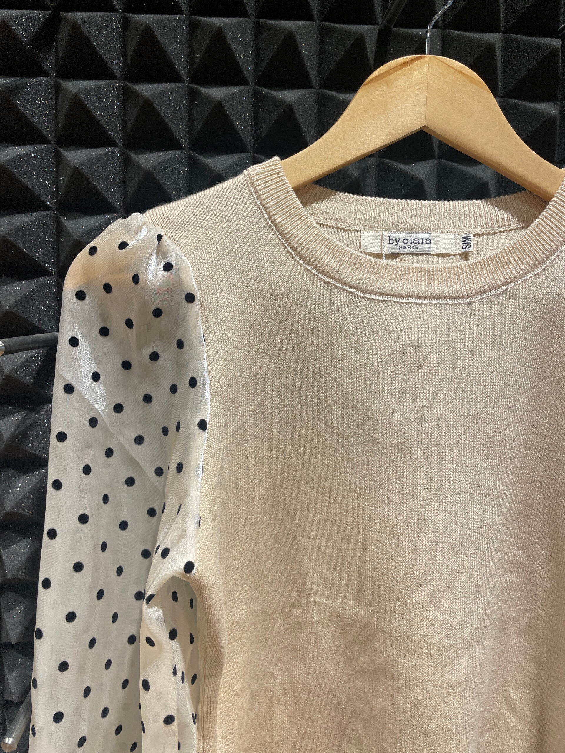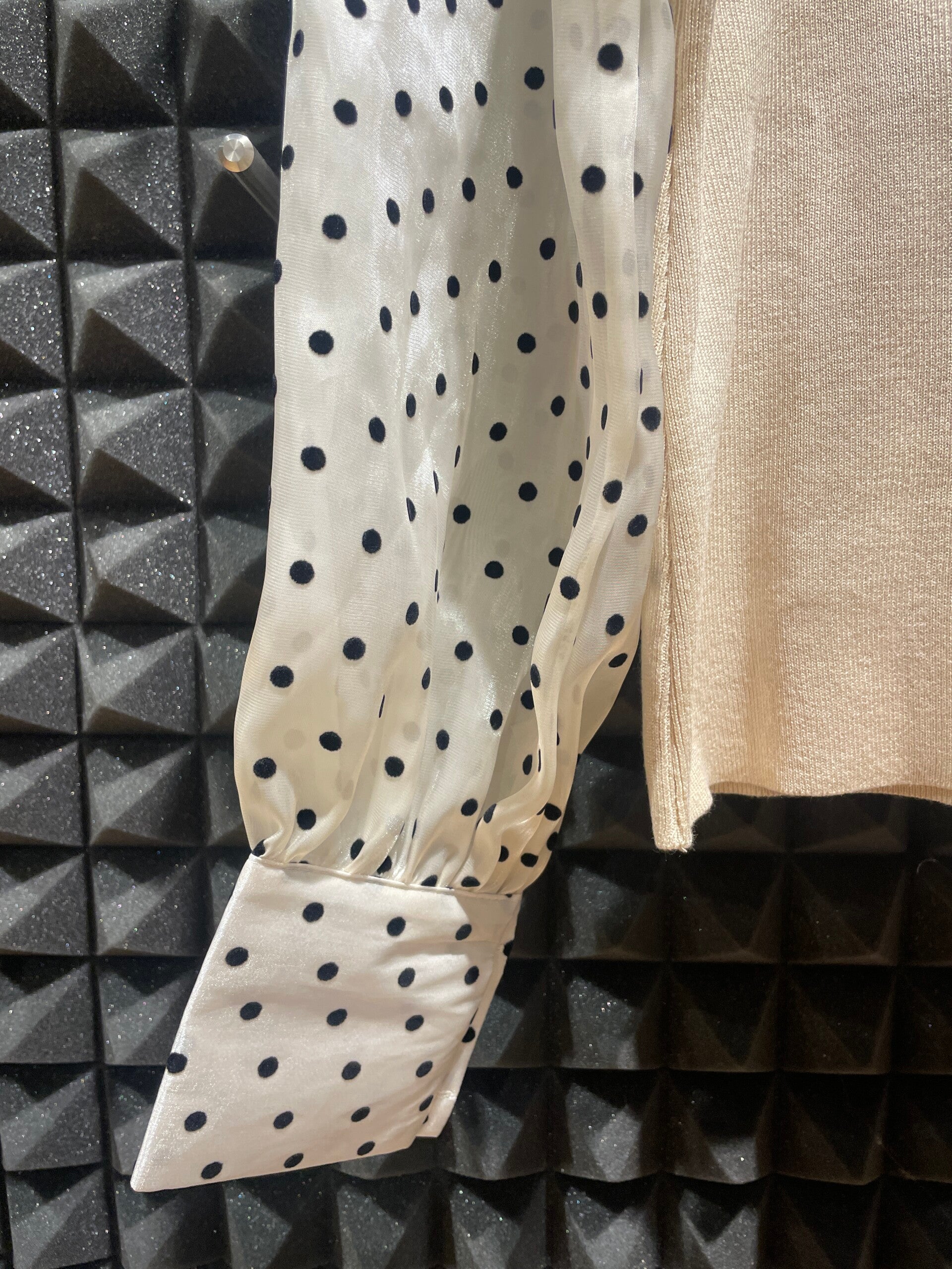 Dunne top met lange mouwen van een dunne stof met zwarte stipjes!