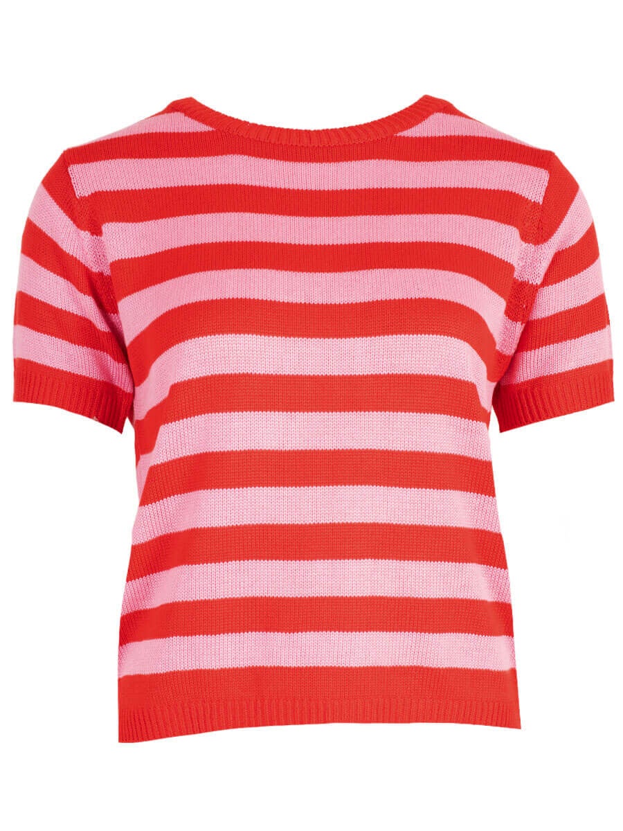Streep Top Azzurro - Rood, Roze